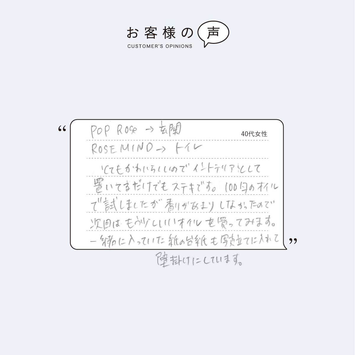 一般のディフューザーに比べ香りの拡散力が高く、長持ちします。
